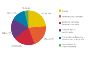 La mayoría de los fondos aprobados -más de $4.900 millones- se ha destinado a proyectos de infraestructura vial; seguido del sector energético por $3.900 millones, y más de $7.900 millones para la micro, pequeña y mediana empresa (mipyme).