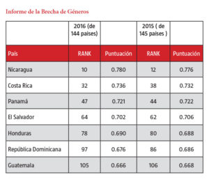 América Central a menudo se enfrenta a críticas en la desigualdad de género debido a su cultura de machismo. Sin embargo, el informe de 2016 muestra que algunos países de la región desafían esta creencia, mientras que otros aún tienen obstáculos que superar.