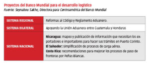 “De acuerdo a estudios del Banco Mundial, la velocidad promedio de un camión circulando por Centroamérica es de 11 km/hora. Esto, inevitablemente, tiene consecuencias elevadas en el costo del producto final. Además de ello, también existen retos en relación a las aduanas y los puestos fronterizos de los países. Como Grupo Banco Mundial hemos identificado, en particular, la existencia de largas esperas y altos costos de transacción, especialmente causados por procedimientos manuales duplicativos y regulaciones obsoletas como el Código Aduanero Uniforme Centroamericano (CAUCA), que dificultan el comercio en la región y fuera de ella”, dice.
