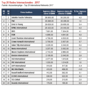 En 2017, AccountancyAge realizó un Ranking de las Top 20 redes de firmas auditoras a nivel mundial. En Panamá operan 18 de ellas, en Costa Rica, Guatemala, El Salvador y República Dominicana se registran 17, en Honduras, 16, y en Nicaragua, 15. Al último cierre de 2017, las 20 firmas registraron US$165.173,00 millones en ingresos a nivel mundial, un crecimiento del 3,49% respecto al 2016.